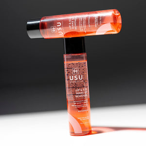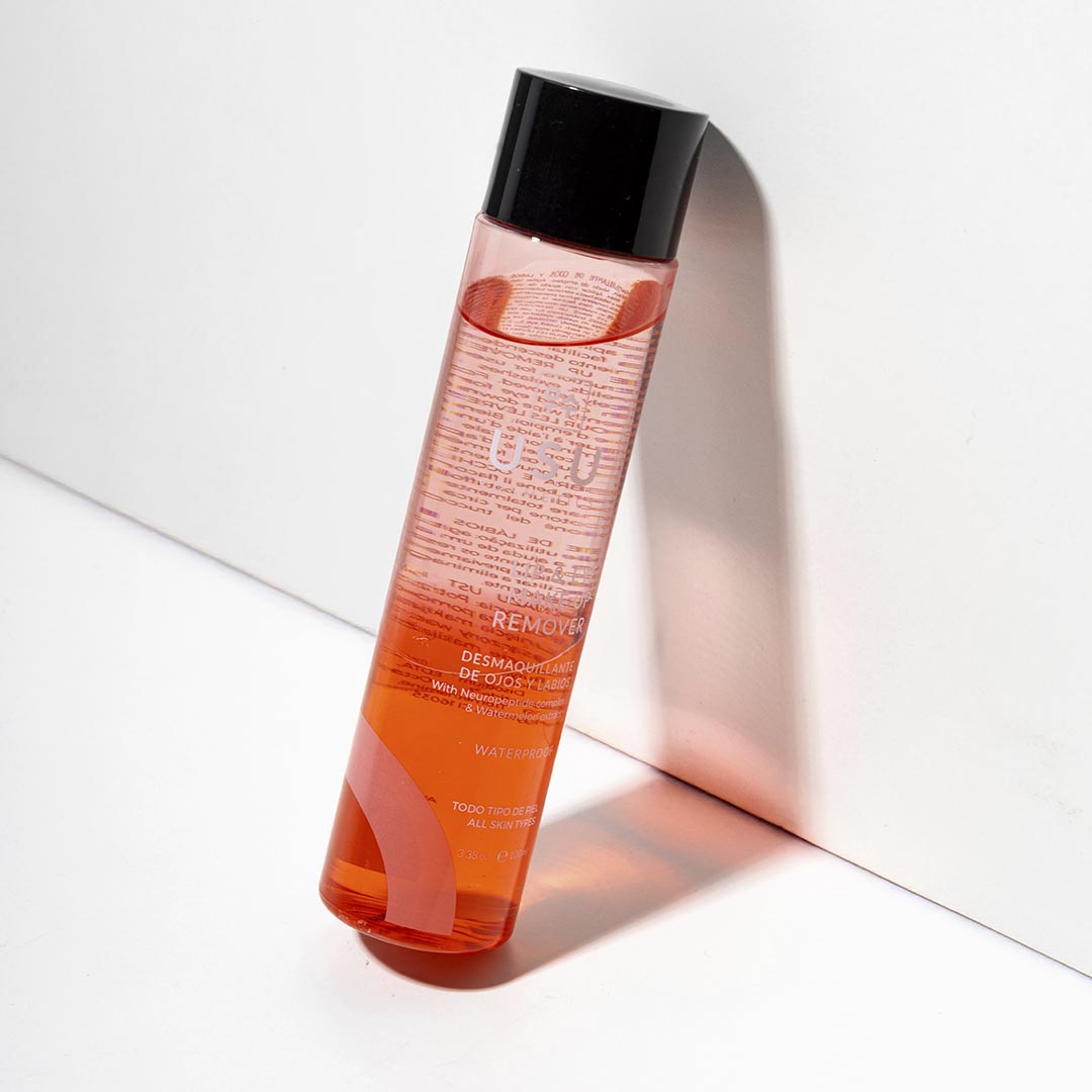 Agita bien el frasco para fusionar ambas fases. Aplica con ayuda de un algodón sobre párpado, pestañas y labios hasta eliminar totalmente los restos de maquillaje. Con el algodón empapado, aplica 5 segundos sobre el ojo o labios cerrados para facilitar la eliminación del maquillaje y retira mediante un movimiento descendente.